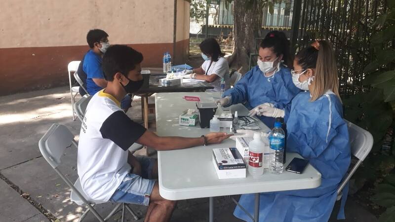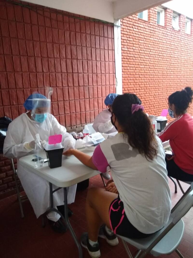 “Es un test rápido que detecta anticuerpos de covid para, sobre todo, casos asintomáticos , explicó la bioquímica Florencia Solari, a cargo de uno de los equipos que visitó el polideportivo de Parque Patricios. La metodología, según detalló, consiste en “un pinchazo en el dedo mediante una punción digital que se coloca en un casete y a los diez minutos ya está el resultado listo para informar .
