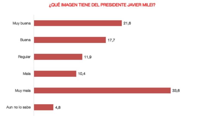 El mismo escenario polarizado aparece cuando se evalúa la gestión: un 33% opina que la situación del país es buena o muy buena, y un 44% asegura que es mala o muy mala.