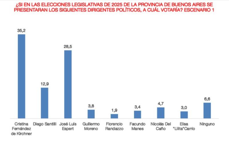 La mano derecha de Kicillof no correría con la misma suerte que CFK o el fundador del Frente Renovador y quedaría bastante por detrás de José Luis Espert y de Diego Santilli, ubicados probables cabezas de listas.