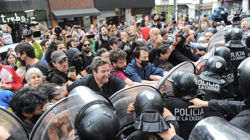 Ayer lunes se produjeron momentos de tensión durante una protesta de trabajadores y otras personas vinculadas a la industria del cine, que exigían la renuncia de Puenzo, mientras cortaban la avenida 9 de Julio, a la altura de Moreno.