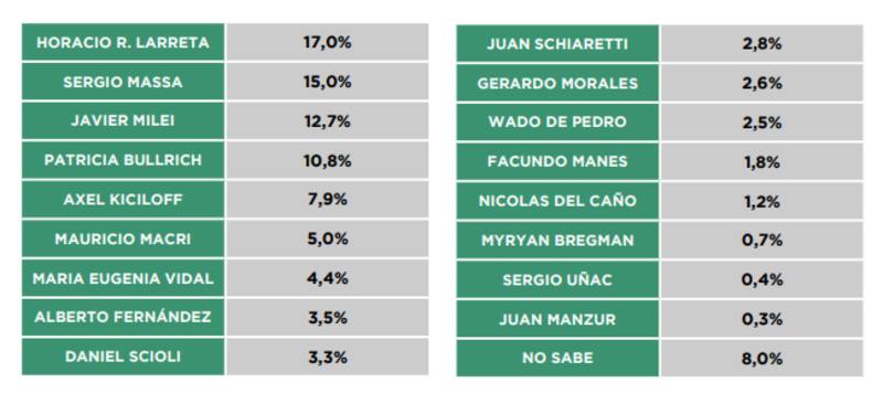 Su consultora lanzó un informe reciente, en el que releva la potencialidad electoral de 17 candidatos de todas las fuerzas, entre los que aparece incluido el gobernador de Córdoba, quien obtendría un 2,8% de votos. En otro informe, 3,5% de las personas relevadas dijo que sería un voto seguro, un 10,1% que probablemente lo votaría y un 62,5% aseguró que nunca lo haría.