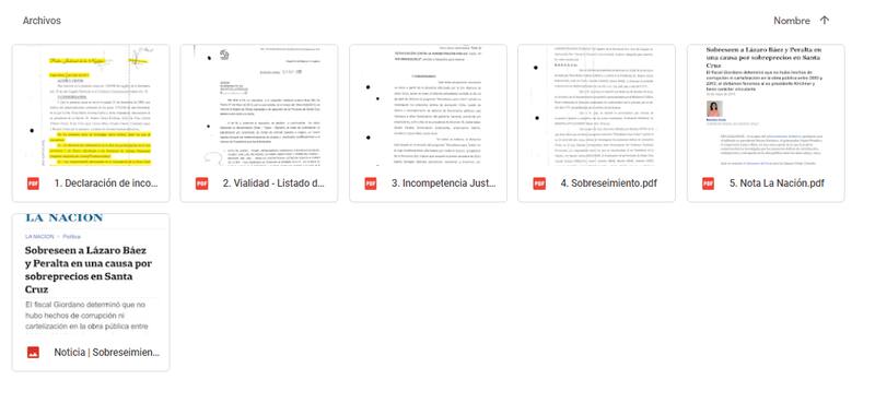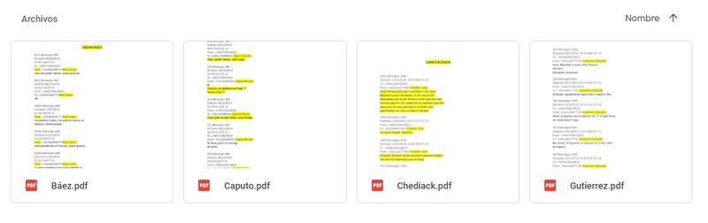 En la tercera carpeta que compartió su equipo se encuentran dos subdivisiones: una en la que recopila tapas de noticias vinculadas a las acusaciones por los sobreprecios que habría cobrado LázaroBaez y otro que consigna un préstamo que el ex presidente MauricioMacri le hizo a NicolásCaputo.