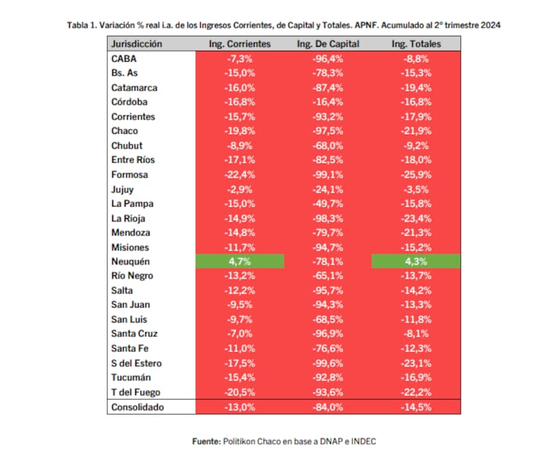 En un contexto de merma de las arcas provinciales por el recorte de Javier Milei, una sola provincia logró subir sus ingresos en el segundo trimestre del año según un estudio llevado adelante por la consultora Politikón.