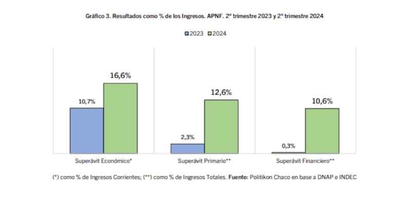 Los superávits primarios más importantes se observaron en Jujuy (37,9%), Santiago del Estero (29,2%), San Juan (24,5%), Formosa (22,6%) y CABA (22,1%); por el contrario, los superávits primarios más débiles estuvieron en Misiones (4,5%), Entre Ríos (4,3%) y Buenos Aires (2,1%)