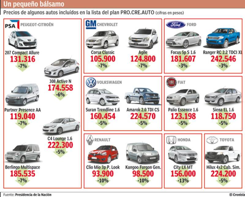 El plan contempla, además de la financiación, una lista de modelos y precios por cada una de las 8 terminales que fabrican automóviles en la Argentina.