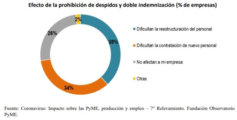 "La prohibición de despidos y la doble indemnización fueron un intento de sostener el empleo. Sin embargo, de acuerdo con la encuesta de FOP, estas regulaciones constituyeron un incentivo negativo para las empresas", afirma la entidad.