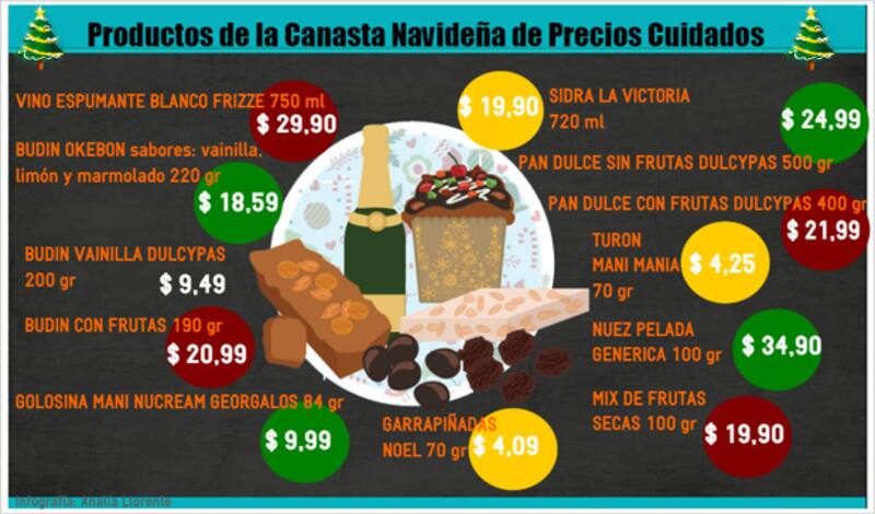 Así, la canasta que anunció el secretario de Comercio, Augusto Costa, al valor de $ 43,50 constará de dos turrones, una garrapiñada, un budín, un pan dulce y una botella de sidra.