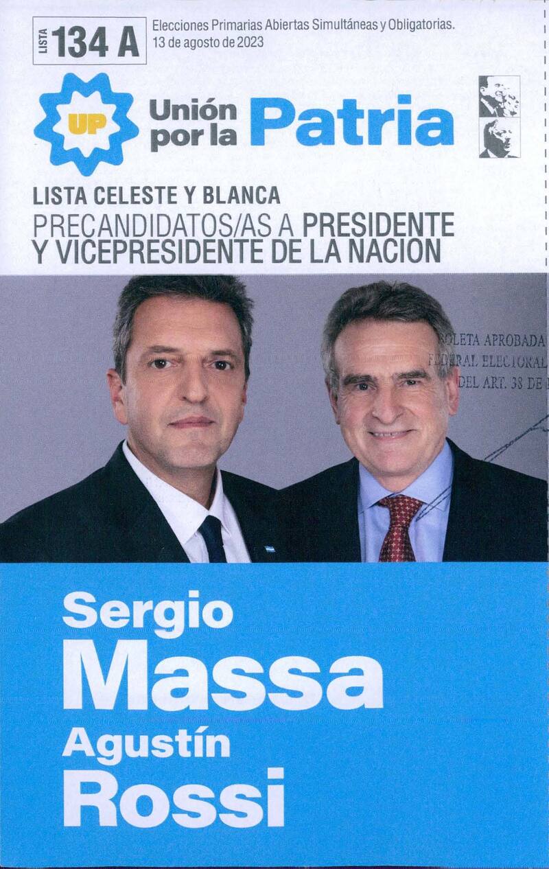 - Lista Celeste y Blanca: Sergio Massa - Agustín Rossi