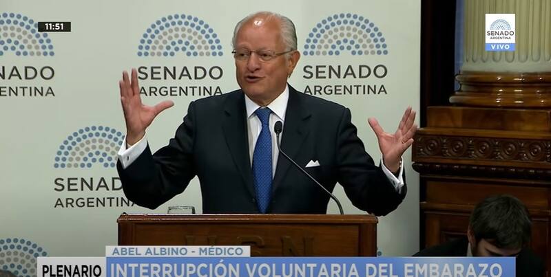 Cuando se llevó el debate sobre la legalización del aborto, Abel Albino fue invitado y aseguró que el profiláctico no protege de nada porque el virus del SIDA atraviesa la porcelana". Se expresó así en su presentación ante el plenario de comisiones de la Cámara alta y criticó el proyecto en debate con argumentos insólitos que generaron indignación en buena parte del auditorio.