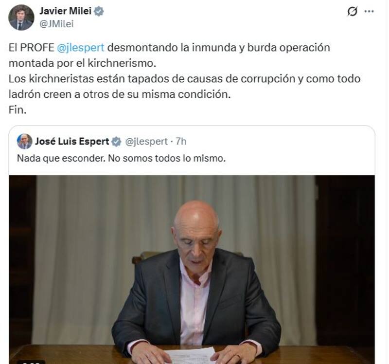 El caso tomó una dimensión política inesperada por su vínculo con el diputado José Luis Espert. Durante la campaña presidencial de 2019, el economista utilizó aviones vinculados a Machado en al menos 36 vuelos registrados por la Policía de Seguridad Aeroportuaria.
