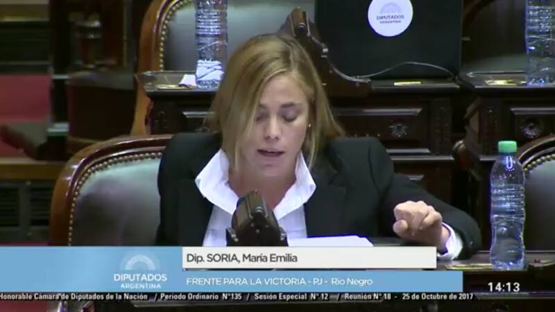 Quien llamó la atención fue la rionegrina María Emilia Soria, quien antes expresó públicamente su posición a favor de conceder el desafuero del exministro, al pedir ser anotada para hablar en el recinto.