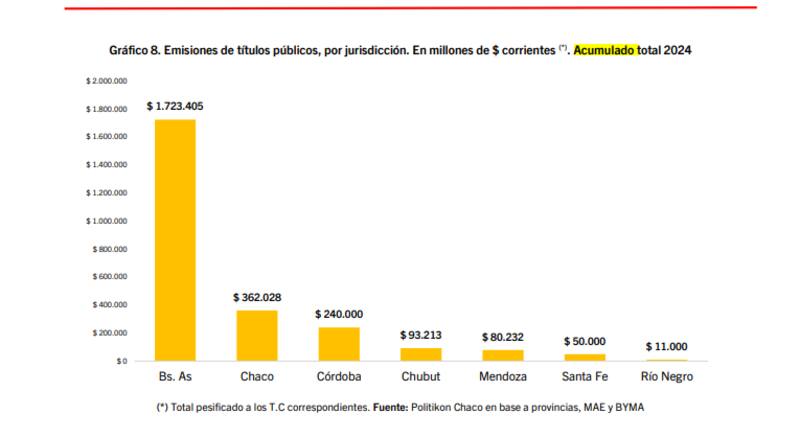 Un análisis realizado por la consultora Politikón Chaco determinó cuál es la provincia que más vencimientos de deuda en moneda nacional y extranjera enfrentó durante el período 2024. En este sentido, solo fueron siete las provincias que emitieron títulos públicos durante el primer año de gestión de Javier Milei.
