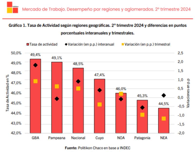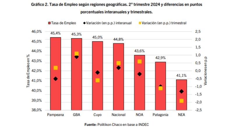 Un relevamiento llevado a cabo por la consultora Politikón Chaco, determinó a través de los números de tasa de actividad y empleo presentados por el Indec, que las nuevas mediciones mostraron "una leve mejora respecto al primer trimestre del año".