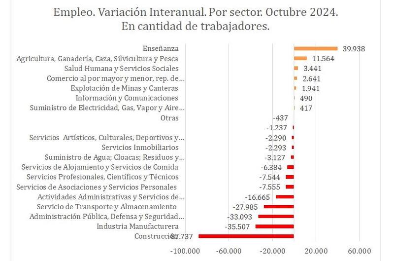 Según la información que analizó IPA, el sector de enseñanza encabezó la generación de empleo en 2024, con 39.938 puestos, sin embargo, este resultado responde a la mutación de trabajadores registrados al sector autónomo.