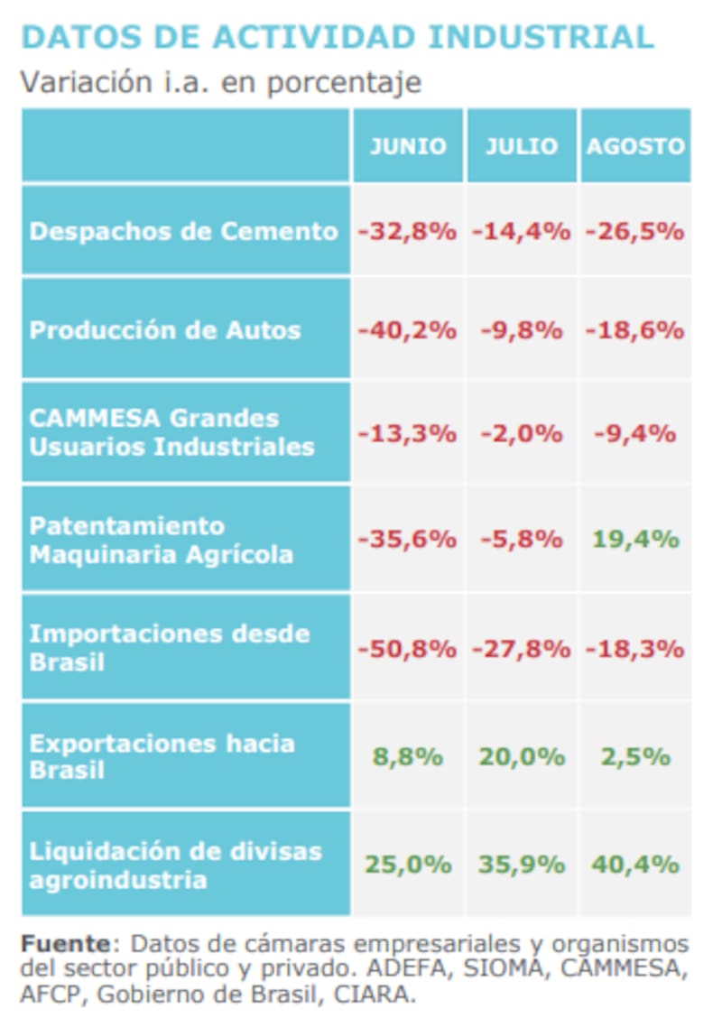 Pero por otra parte, alertan que "los datos anticipados de agosto indican una nueva caída interanual y una baja en la comparación mensual, revirtiendo la mejora de julio".