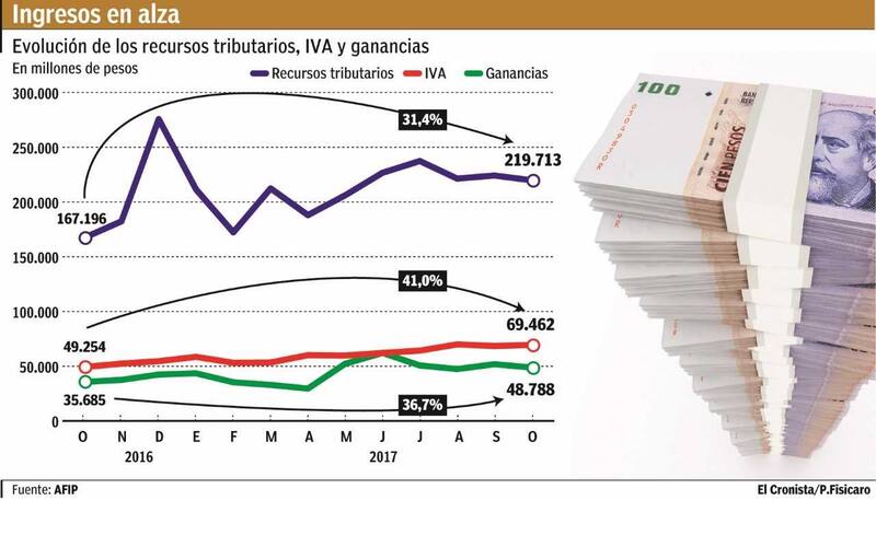 La recaudación tributaria de octubre creció 31,4% respecto al mismo mes de 2016, y sumó ingresos por $ 219.713,3 millones. Jugaron a favor de la suba de la recaudación un incremento importante de los impuestos relacionados con las importaciones y de aquellos vinculados a la actividad económica.