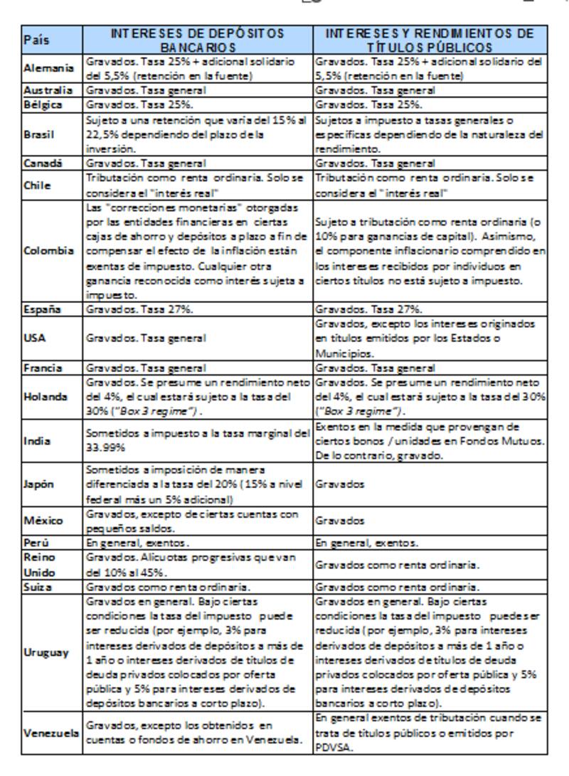A continuación un cuadro con los impuestos sobre la renta financiera en otros países