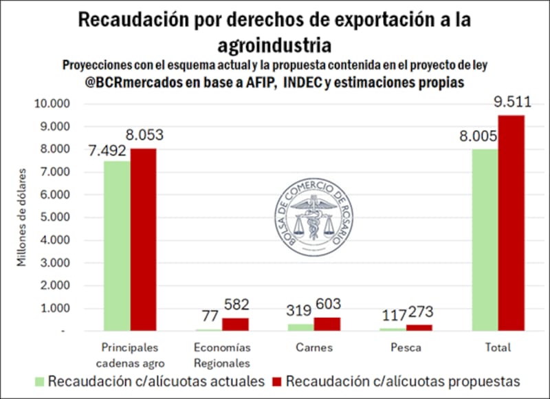 Aunque la medida recaería con más fuerza sobre las exportaciones originadas en Buenos Aires, Santa Fe y Córdoba, las estimaciones reflejan que el impacto sería relevante en todo el país; según los economistas de la Bolsa de Comercio de Rosario (BCR): "un desincentivo exportador sobre las cadenas agro, las economías regionales, las carnes y la pesca".