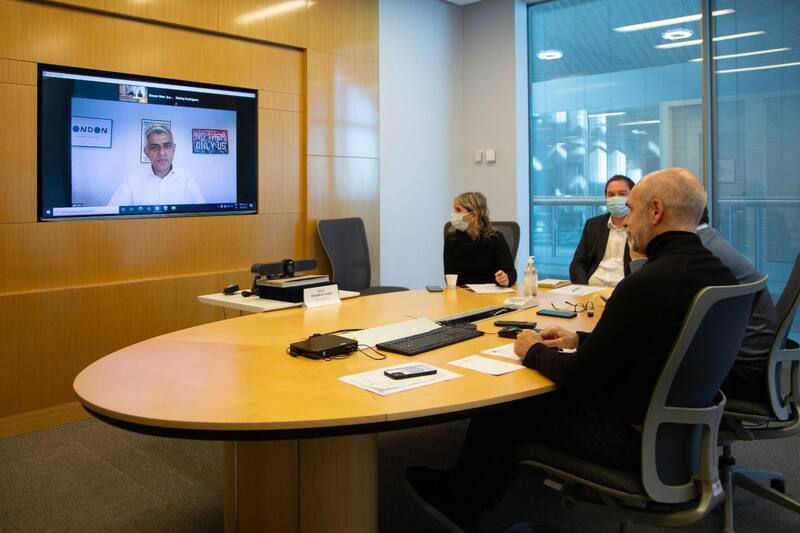 Horacio Rodríguez Larreta se reunió ayer de forma virtual con Sadiq Khan, alcalde de Londres, para analizar los compromisos de ambas ciudades en la agenda global de cambio climático y conocer los planes de la capital inglesa para la pospandemia.