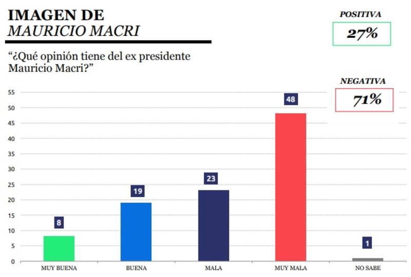 El cierre es para el ex presidente Macri, que también “encuentra el mayor nivel de rechazo entre las personas de menor nivel educativo (87%) y en la tercera sección electoral (83%) y que registra un total de apenas 21% de imagen positiva contra 71% de imagen negativa.
