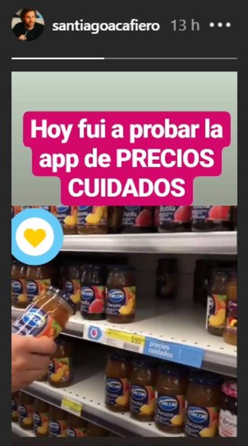 "Hoy fui a probar la app de Precios Cuidados", publicó Cafiero en su cuenta de Instagram junto a un video donde se lo ve en una recorrida por un supermercado.