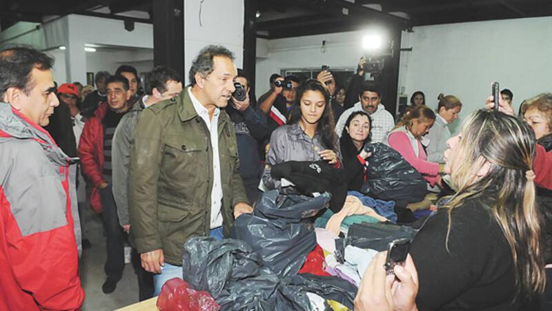 Al rato, Massa salió al cruce del gobernador. Lo hizo mientras anunciaba subsidios y exenciones impositivas para vecinos de Tigre afectados y se sacaba fotos abrazando a los daminificados, que luego su equipo de prensa se encargó de distribuir a los medios. "En Valentín Alsina, Laferrere, Virrey del Pino, Azul y Pringles no hay barrios cerrados y sin embargo hay inundaciones. Dejen de buscar culpables y busquen soluciones", planteó ante la prensa.