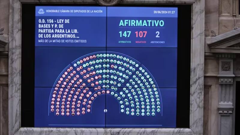 Los paquetes de normas que servirán como punto de apoyo a lo que se proyecta como una nueva etapa de la gestión de Javier Milei se aprobaron con 147 votos afirmativos, 107 negativos y dos abstenciones.