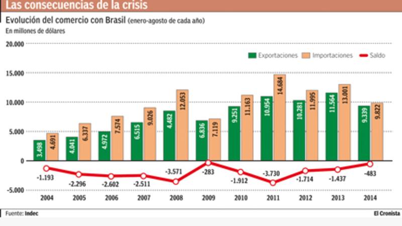 Este comportamiento de las exportaciones y las importaciones es el que se viene reflejando desde comienzos de año. En los primeros ocho meses de 2014, el comercio bilateral cayó 22% se ubicó en los u$s 19.161 millones debido a una merma del 24% en las compras a Brasil y del 19% en las ventas a ese mercado.