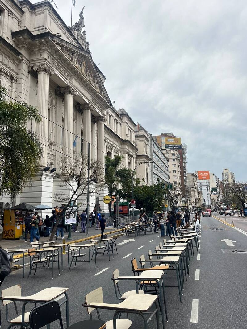 Asimismo, esta mañana la Ciudad de Buenos Aires se despertó con clases públicas cortando la avenida Santa Fe frente a la Facultad de Medicina de la Universidad de Buenos Aires. También sobre avenida Córdoba, las y los estudiantes de Ciencias Económicas sacaron los pupitres a la calle.