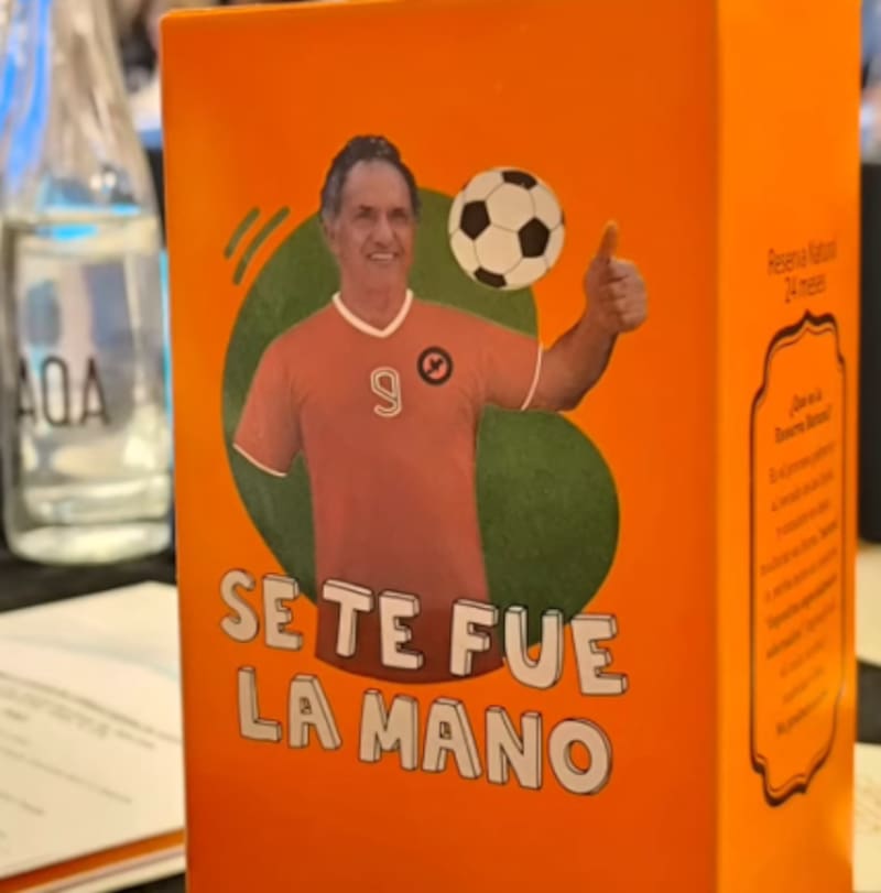 El envase luce un destacado número 9 y el apodo “Pichichi”, referencias directas a su etapa como delantero en “Villa La Ñata”, el equipo de futsal donde solía jugar. La parte posterior del paquete incluye una frase que generó risas por su carga biográfica: “Se te fue la mano”.