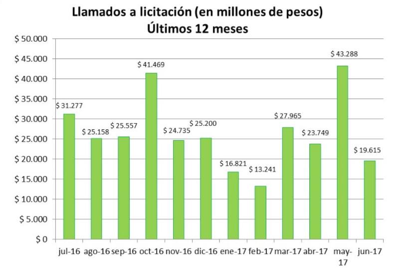 Indicó, de ese modo, que al realizar una comparación entre "el primer semestre del 2017 en el que las licitaciones alcanzaron a un total de $ 144.678 millones y el mismo período de 2016, cuando llegaron a 48.661 millones, se refleja un aumento del 197%".