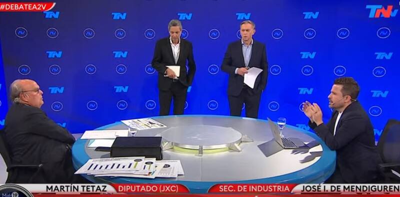 El secretario de Industria y Desarrollo Productivo, José Ignacio de Mendiguren, y el diputado de Juntos por el Cambio, Martín Tetaz, se cruzaron fuerte esta noche en un debate televisivo.