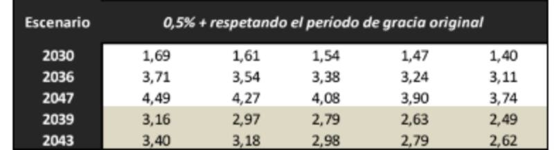 En su propuesta global, el economista de Grupo SBS apunta a que haya dos años menos de gracia junto con una reducción de los cupones menos agresiva y con un cupón inicial que puede ser mejorado.