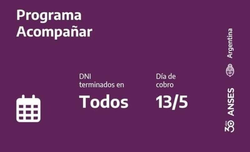 ANSES paga este viernes 13 de mayo, un monto total de $ 38.940 a las titulares del Programa Acompañar del Ministerio de Mujeres, Género y Diversidad Sexual, correspondiente a la liquidación de abril.