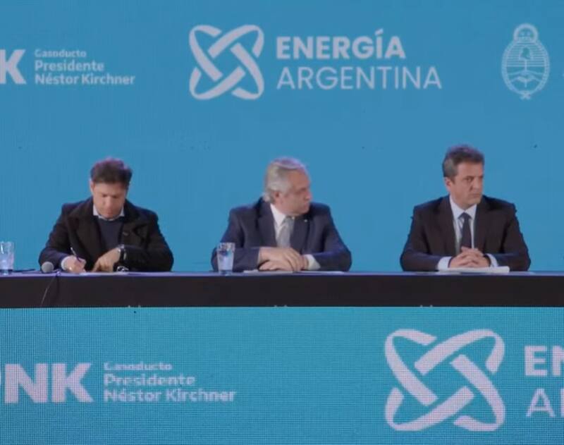 En la firma por el primer tramo del gasoducto Néstor Kirchner, el ministro de Economía, Sergio Massa, aseguró que la construcción es posible "gracias al aporte extraordinario" y aseguró que en treinta días esperan licitar el segundo tramo "para venderle gas argentino al mundo".