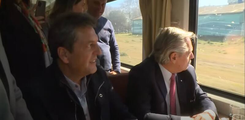 El flamante nuevo ministro de Economía Sergio Massa se mostró por primera vez desde su asunción junto al presidente Alberto Fernández en un acto llevado a cabo en la localidad santafesina de Cañada de Gómez en el marco de la reactivación del tren que conecta a Rosario con la zona.