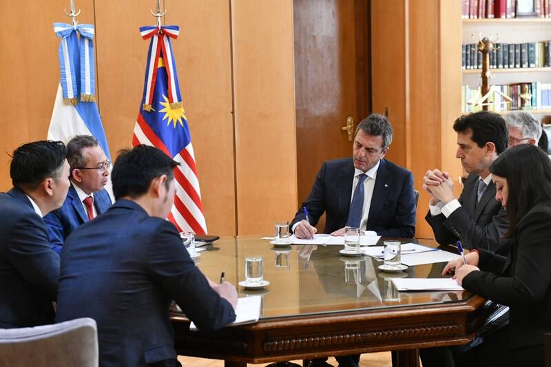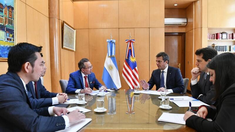 Los ministros de Economía, Sergio Massa, y de Interior, Wado de Pedro, recibieron hoy en la sede del Palacio de Hacienda al embajador de Malasia, Nur Azman bin Abdul Rahim, quien asistió al encuentro con Nazir Nor, country manager de Petronas Argentina, la filial local de la compañía malaya que ya tiene inversiones en la Argentina, en Vaca Muerta y en asociación con YPF.