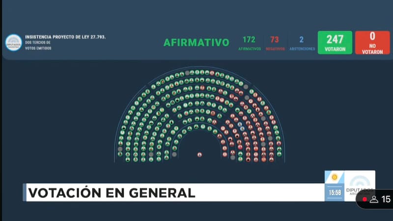 En la primera votación de la jornada, el veto de Milei a la emergencia en discapacidad fue ampliamente rechazado con 172 votos a favor, 73 en contra y 2 abstenciones.