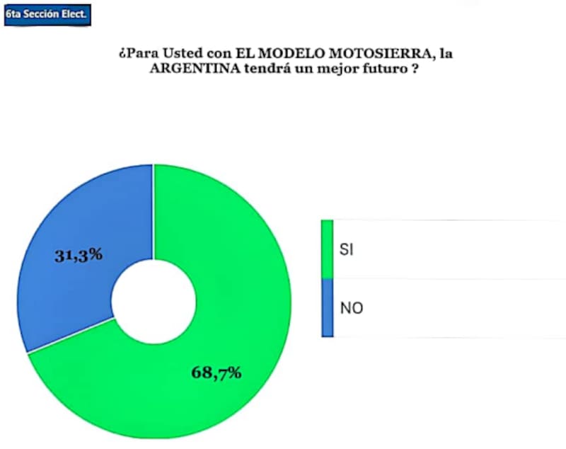 Uno de los datos más llamativos del estudio proviene de la consulta sobre el modelo "motosierra", la estrategia de ajuste impulsada por Milei. Ante la pregunta: "¿Para usted, con el modelo motosierra la Argentina tendrá un mejor futuro?", el 68,7% de los encuestados respondió afirmativamente, mientras que un 31,3% lo rechazó. Este respaldo mayoritario al plan económico del presidente choca con la visión sobre el rumbo dado por Kicillof a la provincia de Buenos Aires.