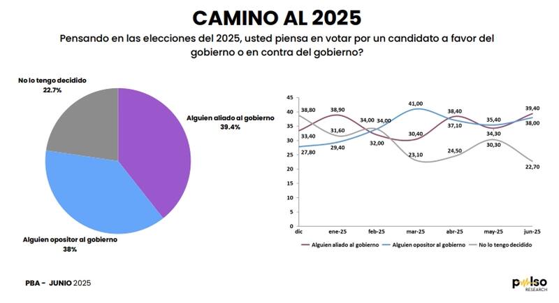Sin embargo, ante la consulta sobre si se votará a un candidato "a favor o en contra del Gobierno, los números están prácticamente empatados.