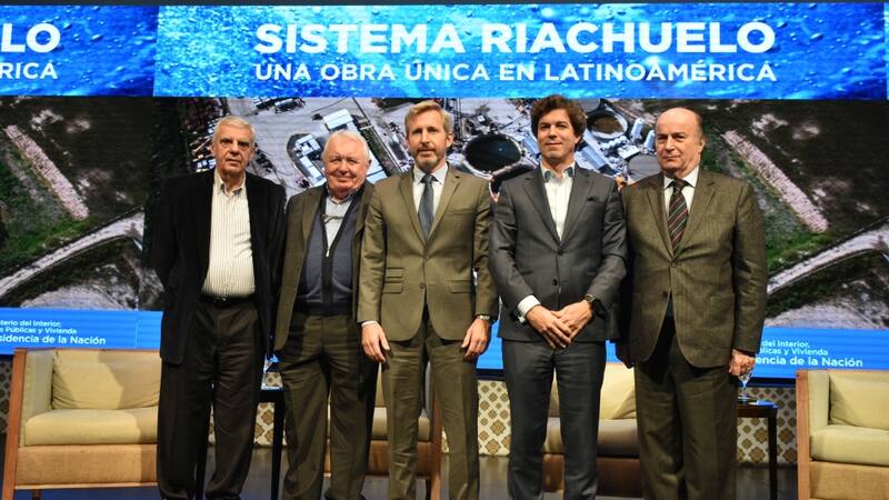 El ministro del Interior, Obras Públicas y Vivienda, Rogelio Frigerio, junto al presidente de Agua y Saneamientos Argentinos S.A. (AySA), José Luis Inglese, encabezaron la presentación del documental “Sistema Riachuelo , la obra más grande que financia el Banco Mundial en Argentina.