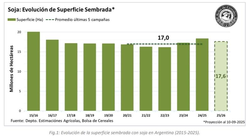 El descenso se explica principalmente por una menor intención de siembra de soja de primera, en gran parte del territorio debido a la creciente competencia de cultivos como el maíz y el girasol.