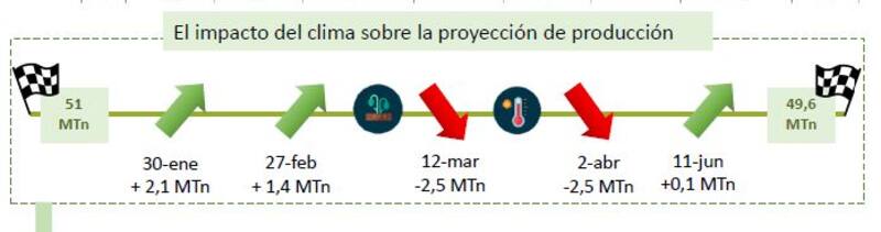 La producción final alcanzó las 49,6 millones de toneladas, 10% menos que la campana anterior y 5,3% por debajo del promedio de los últimos cinco años.