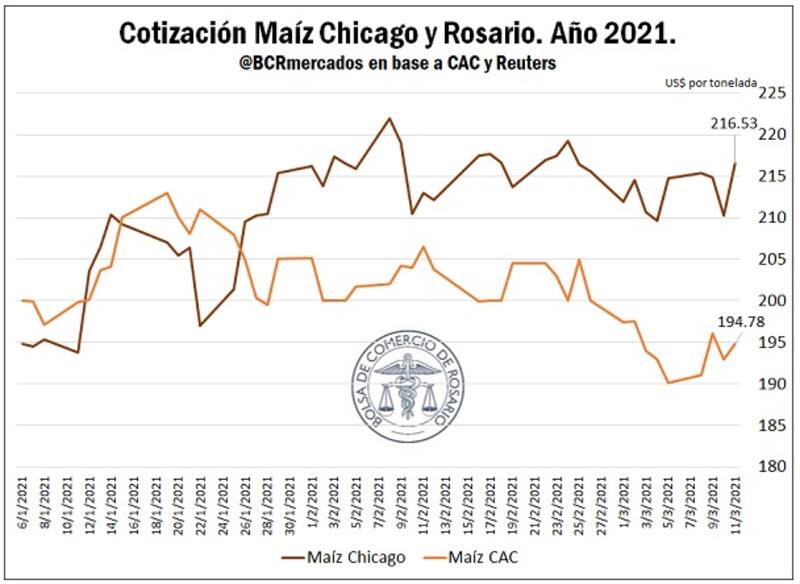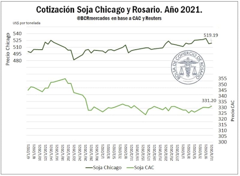 Así, la soja y el maíz siguen manteniendo precios cercanos a máximos de siete años, con valores de cierre próximos a los US$ 519/t para la sojay US$ 216/t para el maíz (datos del jueves), precisó la Bolsa de Comercio de Rosario.