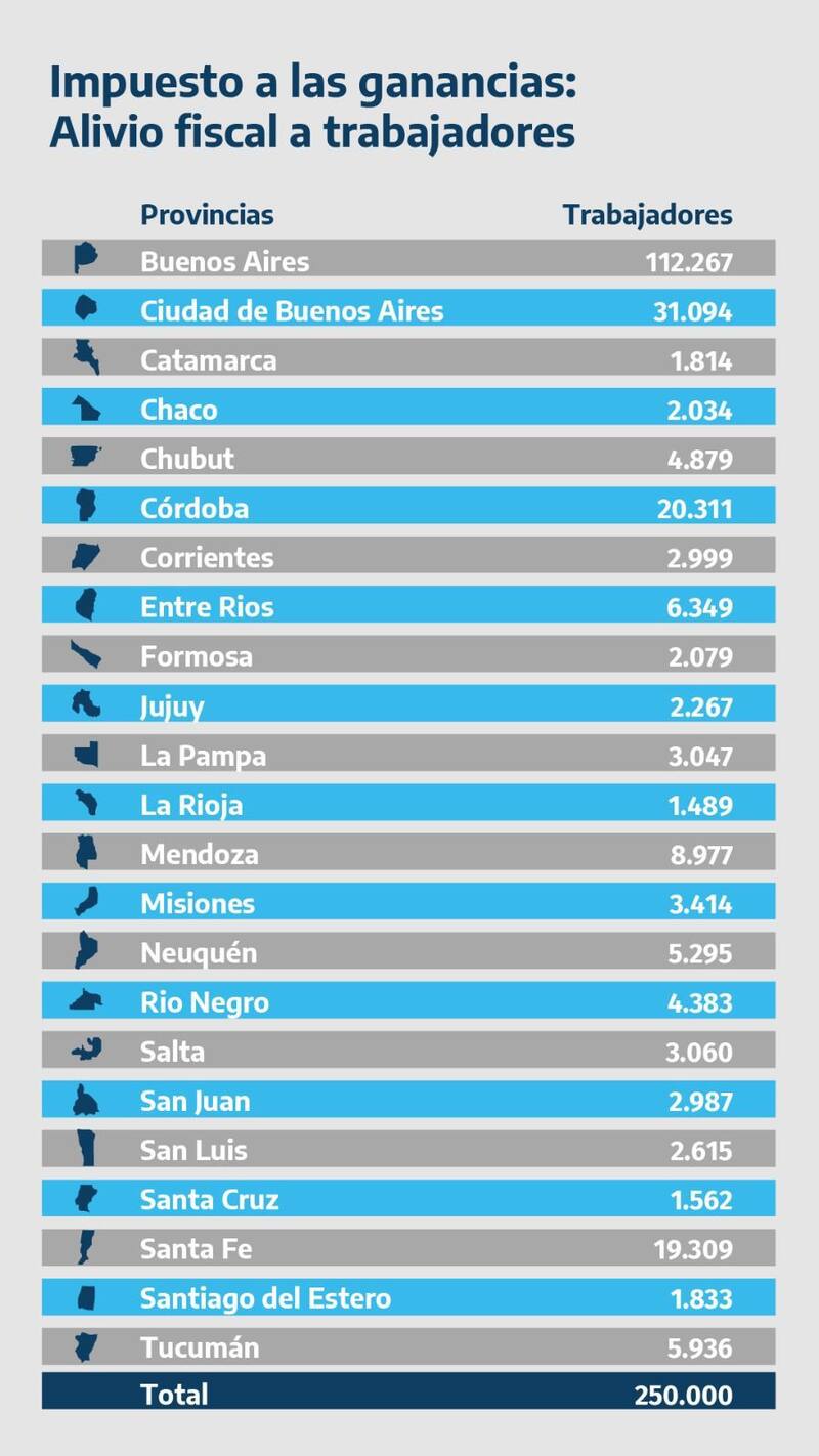 Alivio del impuesto a las Ganancias, provincia por provincia
