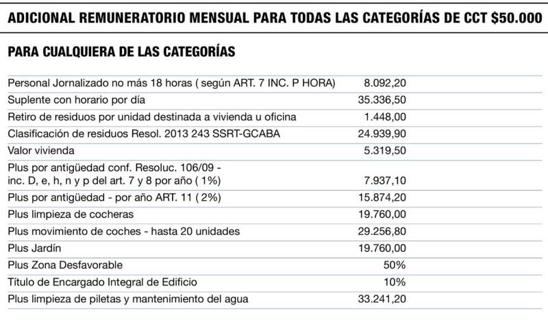 También se actualizaron losvalores de los plus, del retiro de residuos y de las jornadas de suplencia.