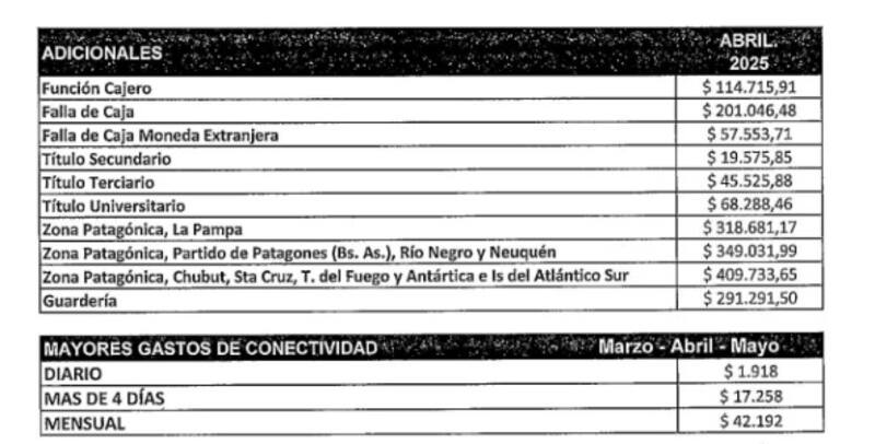 Con el aumento anunciado, el bono por el Día del Bancario quedará en 1.562.429,69, a corregir por futuras actualizaciones.