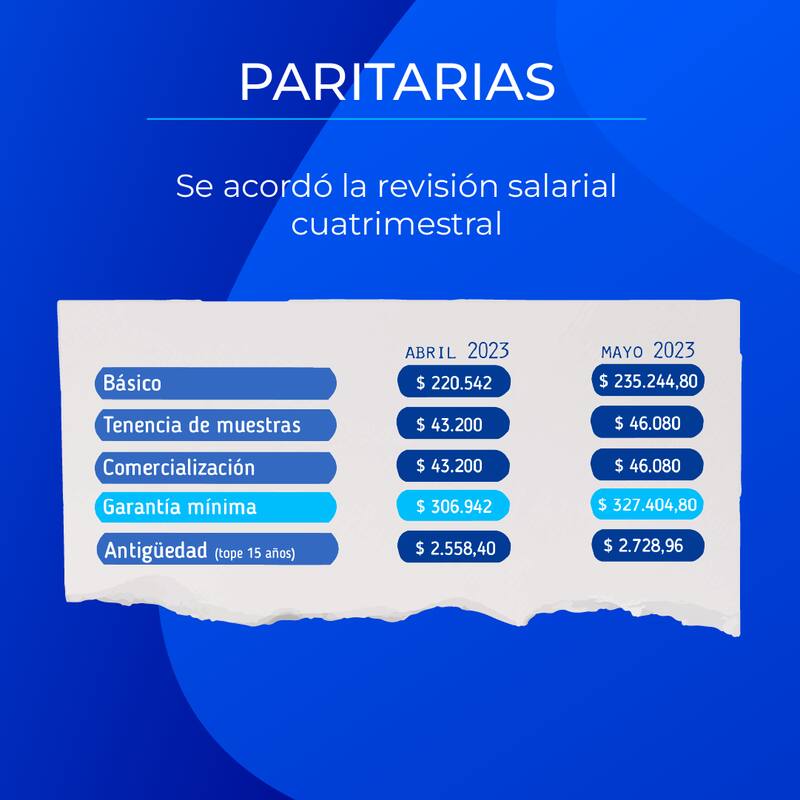 A partir de abril, la escala salarial de los visitadores médicos quedará de la siguiente forma: