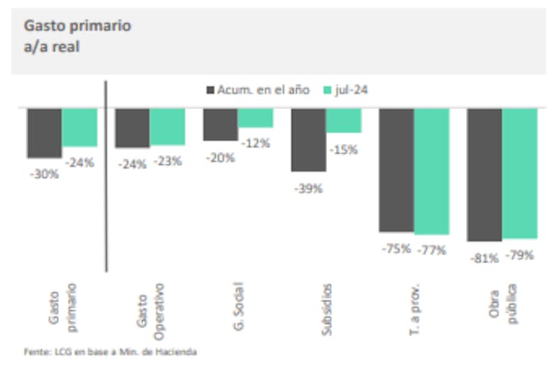 "Julio cerró como el primer mes con déficit fiscal en la gestión del actual gobierno por la incidencia relevante el pago de intereses de los Bonares y Globales (u$s 1,5 mil millones)", detallaron desde la consultora LCG sobre cómo se encuentran las cuentas del Estado.