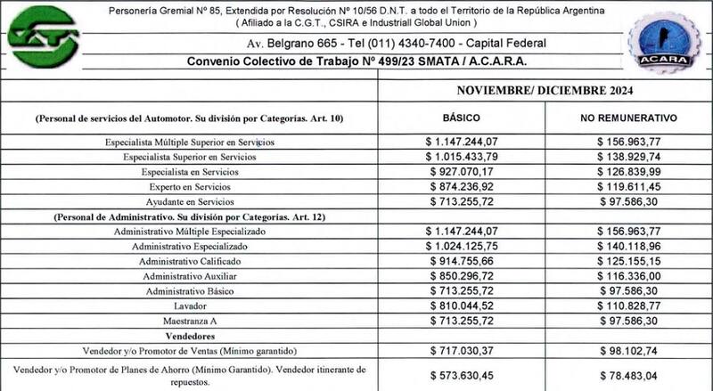 Se trata del Sindicato de Mecánicos y Afines del Transporte Automotor(SMATA), que el pasado 28 de noviembre rubricó un nuevo acuerdo con la Asociación de Concesionarios de Automotores de la República Argentina (ACARA).